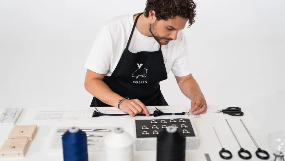 Knotted Rope The entire production process takes place in a workshop in Amsterdam-Noord, using nautical rope from Portugal, among other places. The bracelets are still made the same way Dominic first used for fun. “We use a special sailing technique called splicing. When you tie a knot in a rope, you lose much of its breaking load, weakening the rope. That’s a shame, and it doesn’t look good either. With the splicing technique, you thread the rope's end back into itself. This creates the loop to which we attach the clasp. Thanks to this splicing technique, the rope of your bracelet will stay secure for a lifetime, and it looks great, too,” Dominic explains.