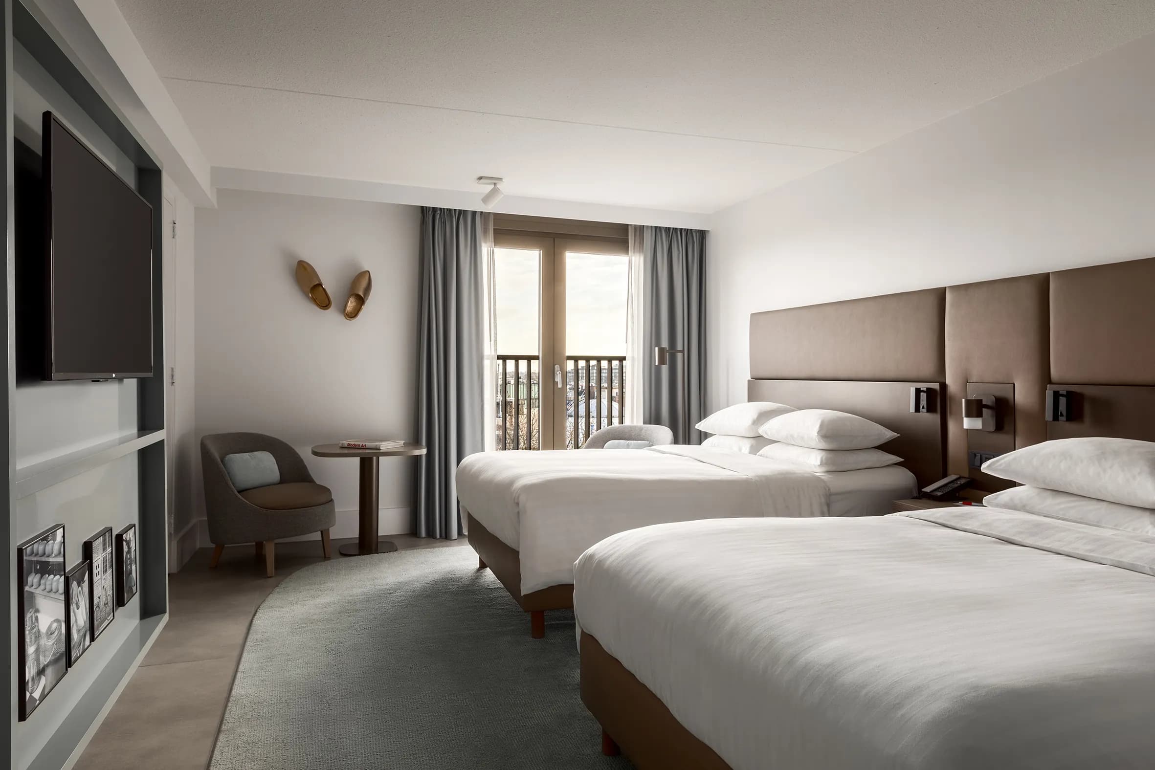 The Amsterdam Marriott Hotel offers family-friendly accommodations, including Family Rooms for up to four guests and Connecting Family Suites for up to seven. The suites feature a king bed, two double beds, and options for a crib or rollaway bed, ensuring plenty of space. Guests staying in the suites also enjoy exclusive access to the M Club lounge with daily breakfast and evening bites.