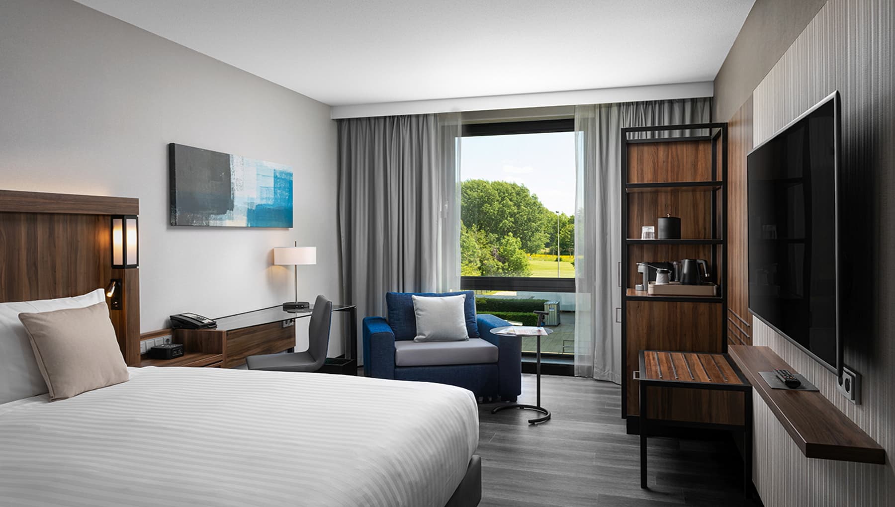 The rooms feature sound-proof windows, luxurious Marriott bedding, a work desk, free Wi-Fi, Smart TV with Chromecast, a private bathroom, mini bar, (laptop) safe and mobile check-in and check-out (for Marriott Bonvoy members).
