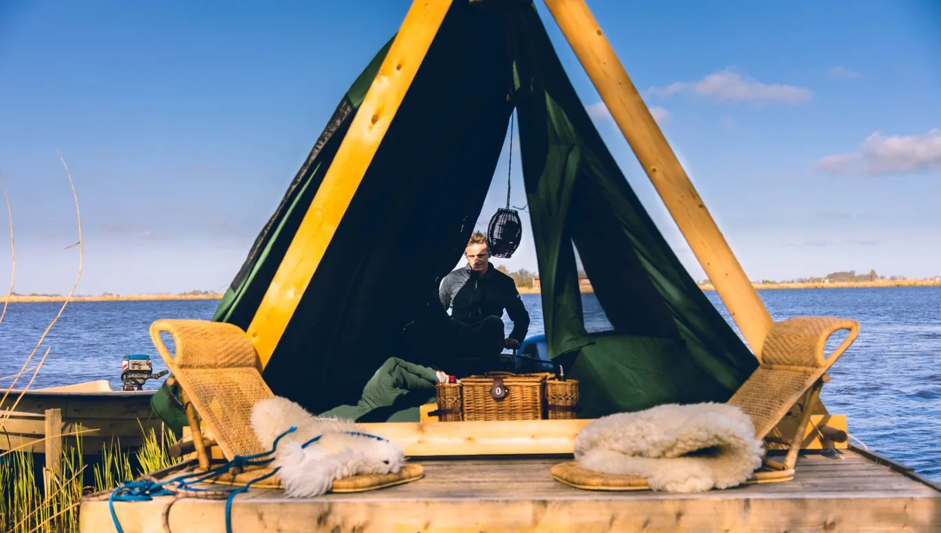 Wanneer je spreekt van een overnachting op het water, gaat de gedachte al snel uit naar grote cruiseschepen of een eigen plezierboot met een ruime kajuit. Maar het kan ook anders. Zo kun je in Waterland kamperen op een vlot! Stap in Uitdam op, vaar het vlot door schitterend (waterrijk) natuurgebied en gooi het anker uit waar jij je nacht door wilt brengen en zet de tent in een handomdraai op. En dat allemaal zonder af te stappen.