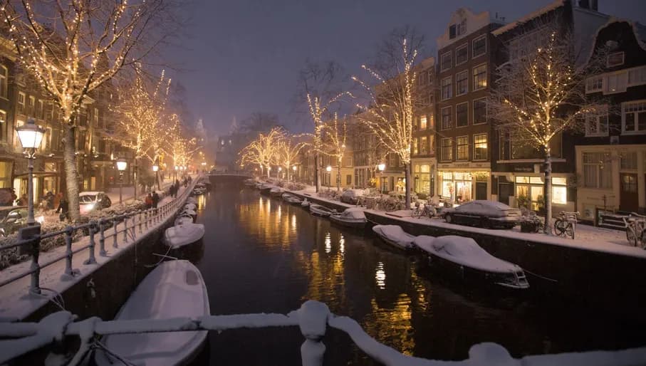 Er valt niet over te twisten; Amsterdam is bedolven onder sneeuwvlokken extra mooi. De momenten zijn schaars maar als het dan zo ver is, dan doet de stad denken aan een kerstkaart. Voor wie een sneeuwpop wil maken of wil sleeën, zit bij de grotere parken zoals het Vondelpark of het Westerpark zeker goed.