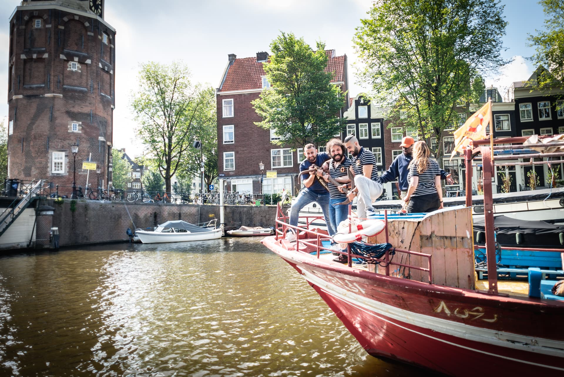 In 2015 hebben we van het Italiaanse eiland Lampedusa een tweetal door vluchtelingen achtergelaten boten opgepikt en naar Amsterdam gebracht. Met als doel om daarmee de meest kleurrijke, meest inclusieve en meest sympathieke rederij van de stad – maar misschien wel van heel Europa – op te richten. Of we daarin geslaagd zijn mag je zelf komen bepalen. Wij – een gemêleerd gezelschap met roots in Syrië, Somalië, Eritrea, Columbia, Turkije, Egypte en Nederland – varen en gidsen je met veel plezier door onze wereldstad én thuishaven.