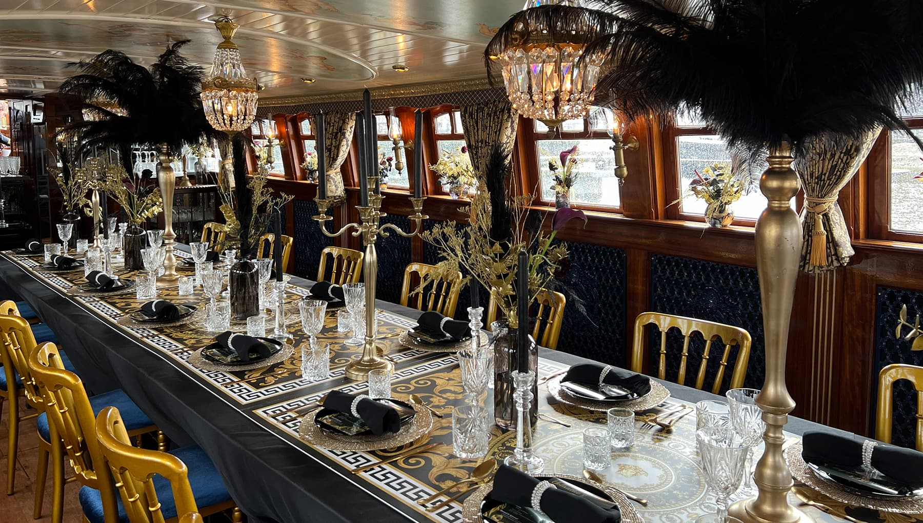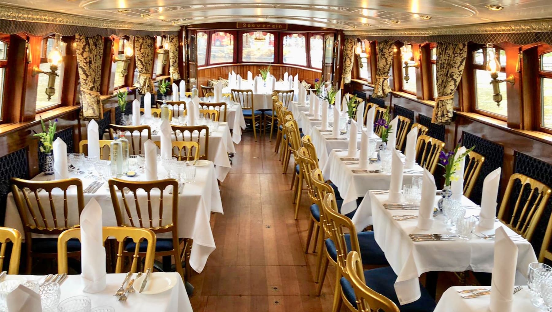 Deze boot is zelfs de meest luxueuze, elektrisch aangedreven salonboot op de grachten van Amsterdam. De volledig ingerichte ‘open’ keuken en piano bieden hét podium aan culinaire en muzikale specialisten. Op de Soeverein kunnen je gasten zich dus uitstekend vermaken. Het is dan ook niet voor niets dat we de wekelijkse, en inmiddels beroemde, MusicDinnerCruises op deze salonboot organiseren.