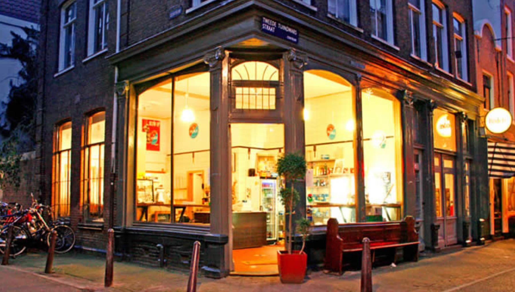 Het sfeervolle café is gevestigd in een authentiek pand met hoge plafonds met ornamenten en serveert lekkere, betaalbare gerechten. Typische caféklassiekers als kaasfondue, mosselen en kipsaté, maar ook iets gewaagdere receptuur. En het terras heeft bijna de hele dag zon.