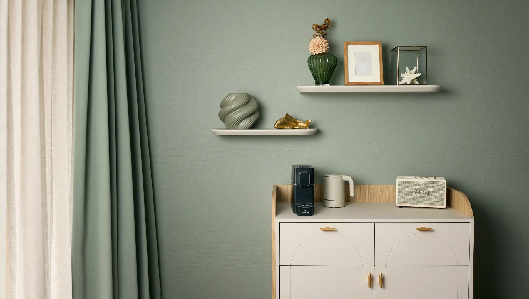 Bij binnenkomst in de Deluxe-hotelkamer voel je het meteen: de natuurlijke materialen, warme kleuren en zachte stoffen geven de kamer een ontspannen, huiselijke uitstraling. De inrichting is een subtiele knipoog naar het groene polderlandschap dat Volendam omringt.