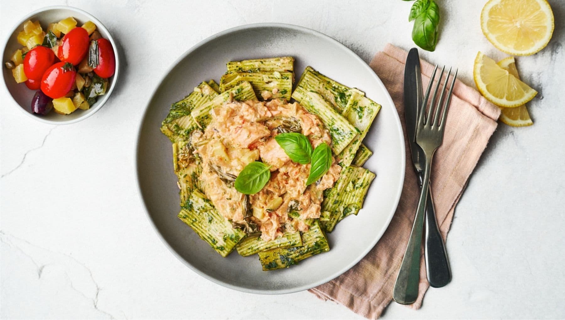 Geen tijd om naar een restaurant te gaan, maar toch op zoek naar eten met een persoonlijk, vriendelijk en milieubewust karakter? Door een sympathieke bezorger met bakfiets wordt deze supergezonde maaltijd afgeleverd in grote porseleinen schalen. Zo persoonlijk en lekker, net alsof je er zelf de hele dag voor in de keuken hebt gestaan.