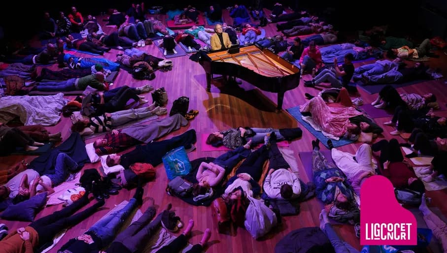 Tijdens dit ligconcert luister je niet zittend, maar liggend naar de muziek. Pianist Jeroen van Veen speelt werk van Ludovico Einaudi terwijl het publiek op matjes en kussens midden in de zaal ligt. De minimalistische pianostukken komen zo extra dichtbij. Neem zelf een matje of deken mee, of kies een ticket met een opgemaakt bed.