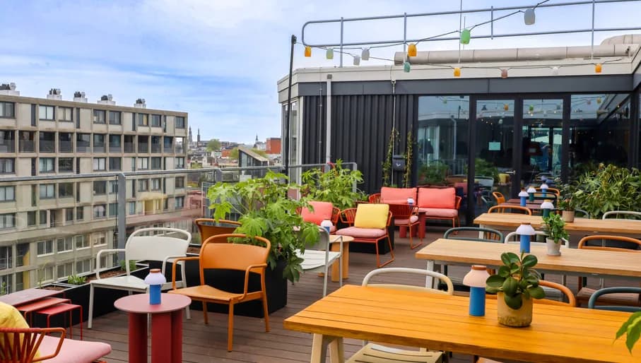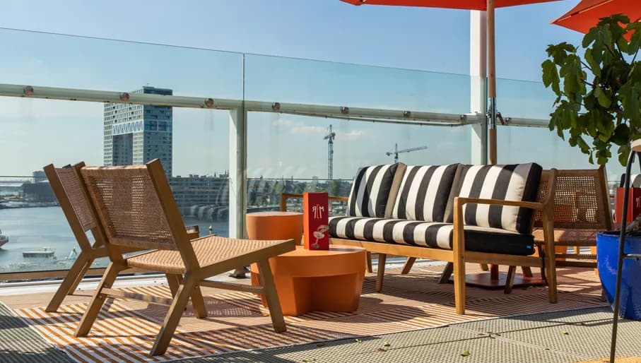 Naast W Lounge zit ook Mr. Porter op de bovenste verdieping van W Amsterdam, waar je kunt loungen op het dakterras. Met uitzicht op onder andere het Paleis op de Dam is dit een van de meest high-end locaties om te genieten van goed weer. Let op: ze hanteren wel een smart-casual dresscode.
