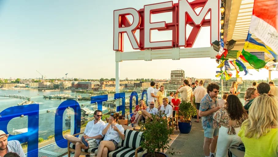Bovenop het gebouw van REM Amsterdam vind je REM rooftop, het dakterras van de Houthavens. Het hele jaar door kun je genieten van het uitzicht op het IJ, fingerfoods, bier op fles, cocktails en zelfgemaakte limoncello en siropen.