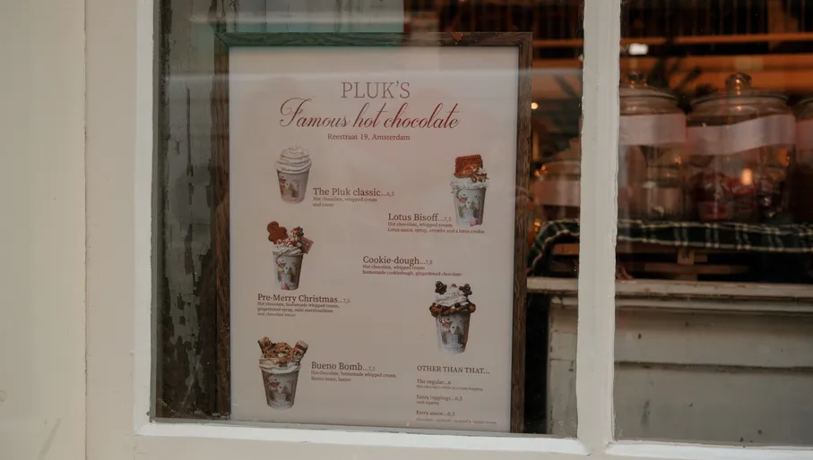 PLUK zit in De 9 Straatjes, meteen de ideale plek om even op te warmen na het winkelen. Hun warme chocolademelk is een waar kunstwerk. Deze wordt namelijk afgetopt met een flinke dot slagroom, de ideale landingsplaats voor de vele kleine marshmallows die er nog overheen worden gestrooid. En als je er dan toch zit, kun je er net zo goed een Bueno roll bij nemen.